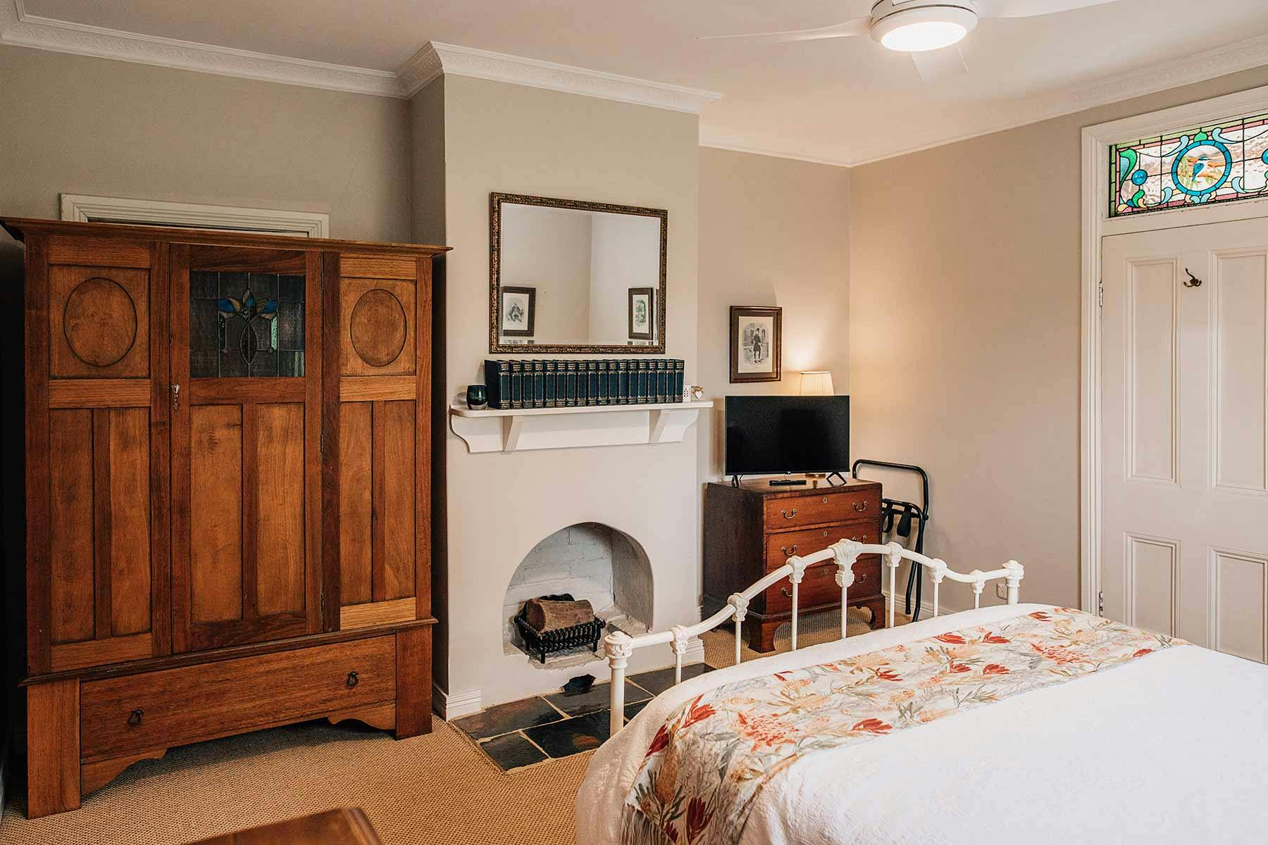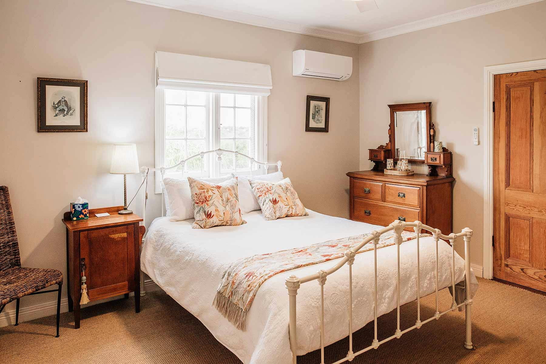 Enjoy a fabulous night’s sleep in our Sacred Kingfisher room, named for the handmade stained glass window that is a riot of spectacular colour in the morning sun. This room features a very comfortable queen sized bed with luxury linens and newly renovated ensuite bathroom offering a shower and all the amenities you would expect to find at a luxury hotel. Other room amenities include flat screen television, coffee and tea making facilities, electric blankets, reverse cycle air-conditioning and complimentary high-speed Wi-Fi in all rooms and public areas.